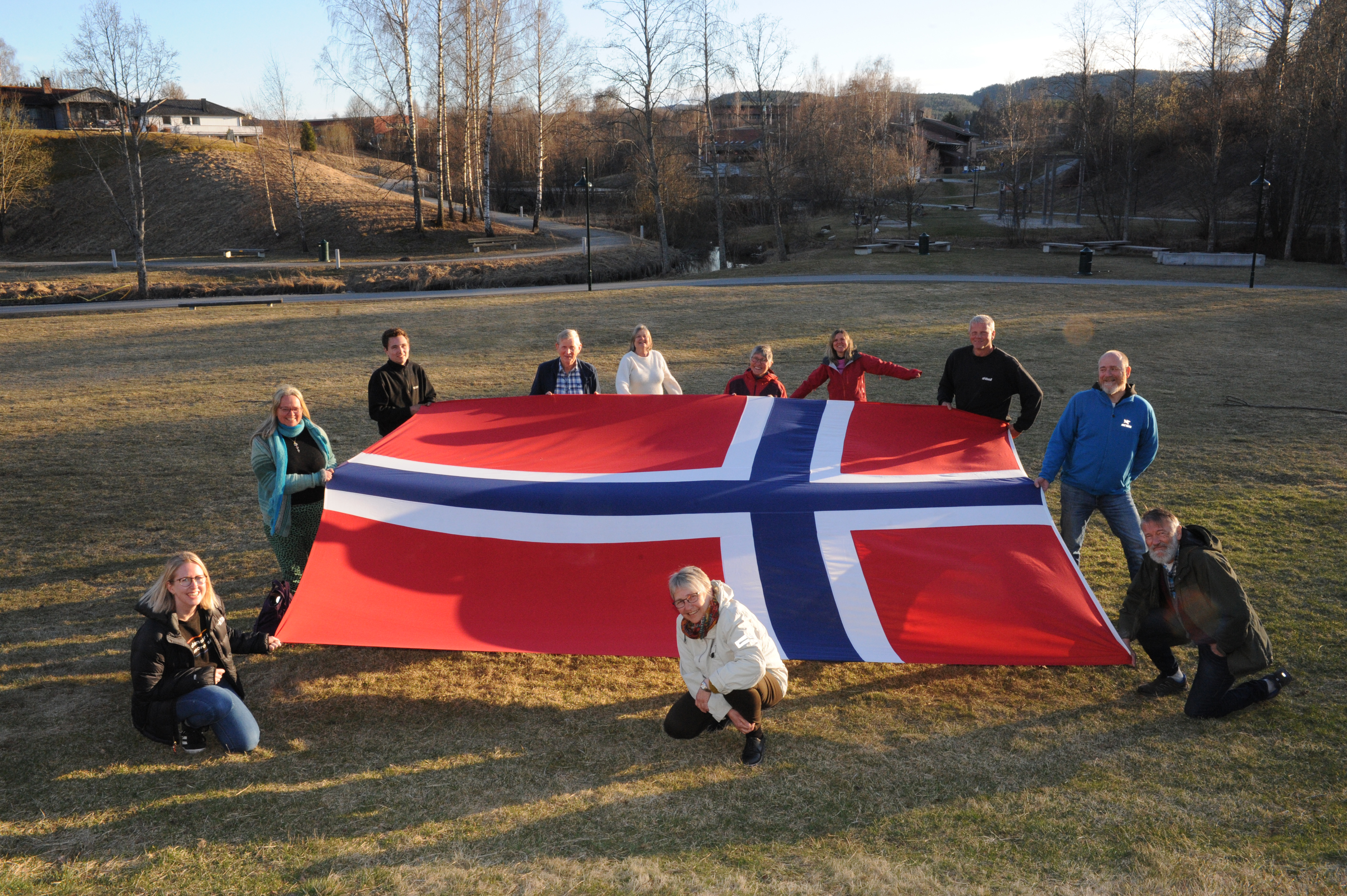 KOMITEEN: 17. mai-komiteen lovar at det blir feiring, men heller ikkje i år blir nasjonaldagen som vanleg. F.v. Gunn Kristin Leikvoll, Audhild Lindheim Kennedy, Tor Olav Kjøk, Harald Omnes, Hilde Pedersen, Bergit Li, Guri Røsok, Arne Kristian Forberg, Dag Einar Hvitsand, Ulf Vege og Kristin Ødegård Vestgarden (framme)